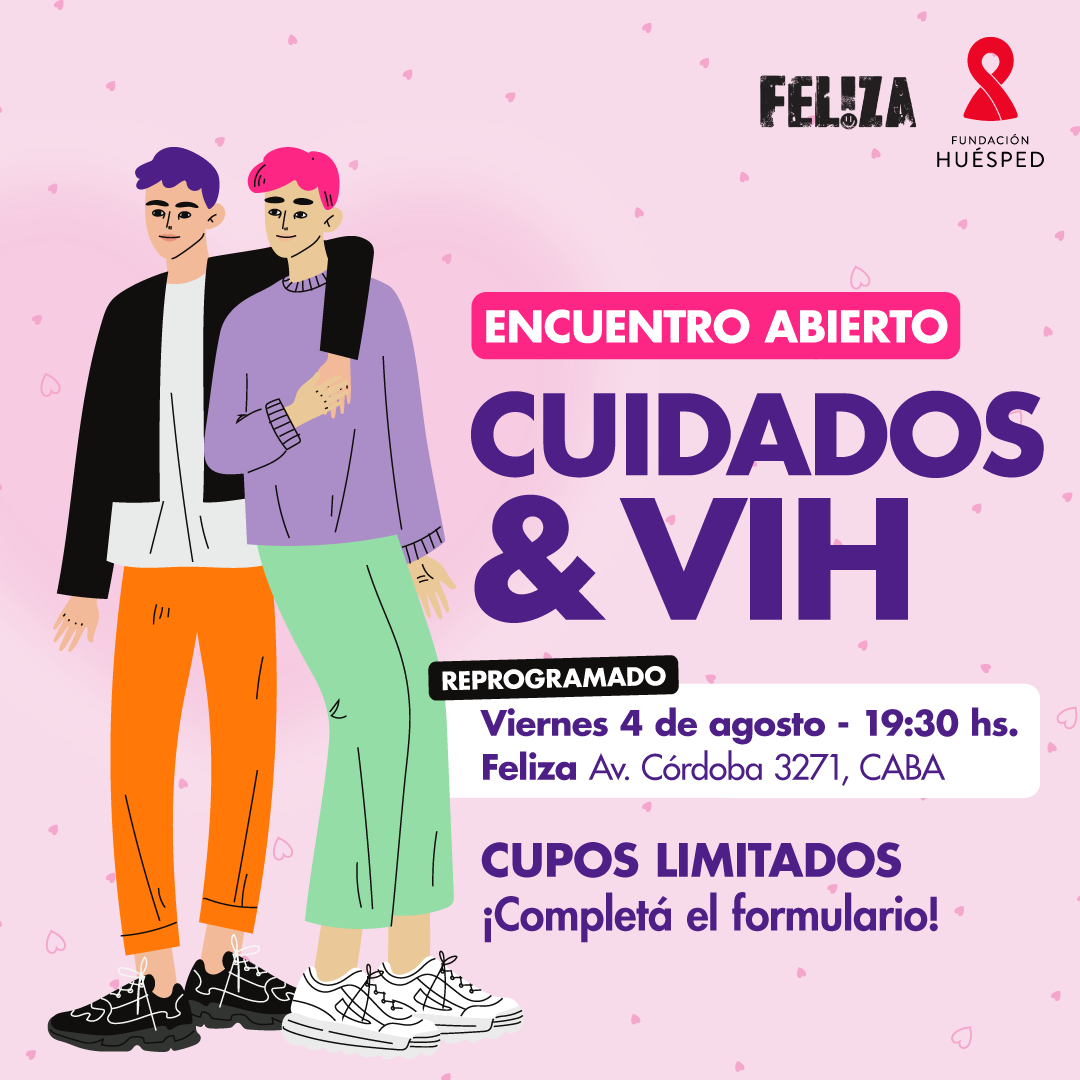 Si tenés dudas, necesitás información o querés compartir y conocer otras experiencias, este encuentro grupal abierto sobre cuidados y VIH es para vos. Junto a profesionales de Fundación Huésped vamos a conversar sobre PrEP, PEP, I=I, uso de preservativo, cuidados y tratamiento para el VIH.