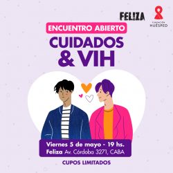 Si tenés dudas, necesitás información o querés compartir y conocer otras experiencias, este encuentro grupal abierto sobre cuidados y VIH es para vos. Junto a profesionales de Fundación Huésped vamos a conversar sobre PrEP, PEP, I=I, uso de preservativo, cuidados y tratamiento para el VIH.