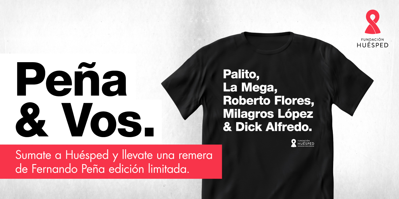 Un 31 de enero hace 59 años nacía el único e inigualable Fernando Peña. Para homenajearlo lanzamos la campaña #Peña&Vos. Si esta semana te asociás con una donación mensual desde $34 por día, te llevás de regalo una remera edición limitada con las criaturas de Peña. En Fundación Huésped ofrecemos testeo rápido, información, acompañamiento psicológico, …