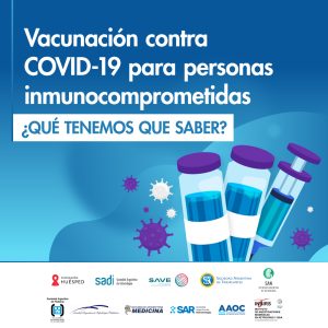 Una decena de sociedades y asociaciones médicas del país se reunieron para elaborar un documento de posición sobre la vacunación contra COVID-19 en personas inmunocomprometidas. Se tuvo en cuenta que, según la evidencia hasta el momento, esta población tiene mayor riesgo de enfermarse, presentar formas graves a causa del SARS-CoV 2 o que la enfermedad se prolongue por más tiempo.
